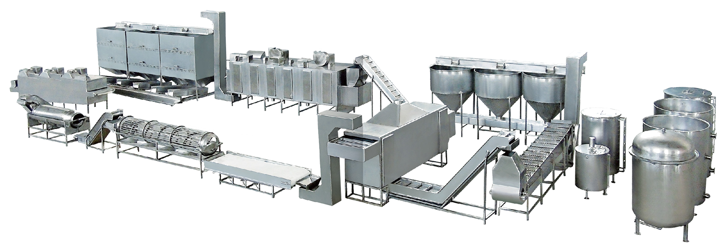 該生產線結合多種堅果加(jiā)工工藝,一條生產線可加工多種堅果。可(kě)實現對開心果、夏威夷果、碧根果、巴旦(dàn)木(mù)、紙皮核桃、鹵(lǔ)味(wèi)花生果等(děng)多種堅果的深加工。